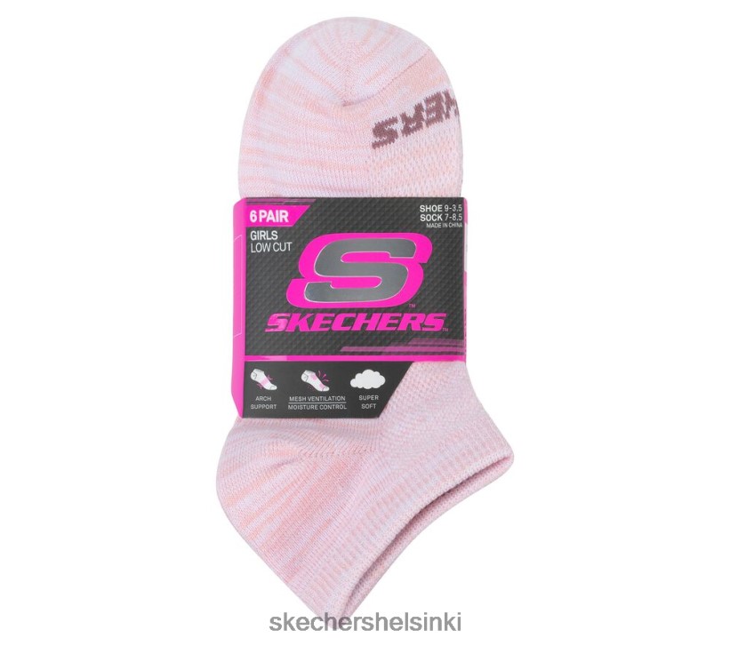 Sileä kaikki tyylikkäästi Skechers -tarvikkeilla 6 pakkaus tyttöjen matalalla värillisellä raidan sukalla. Pehmeä poly -sekoituskangas nilkan korkeudessa urheilullinen mukavuussukka mukavuus- ja värikkäin raitamalliin.