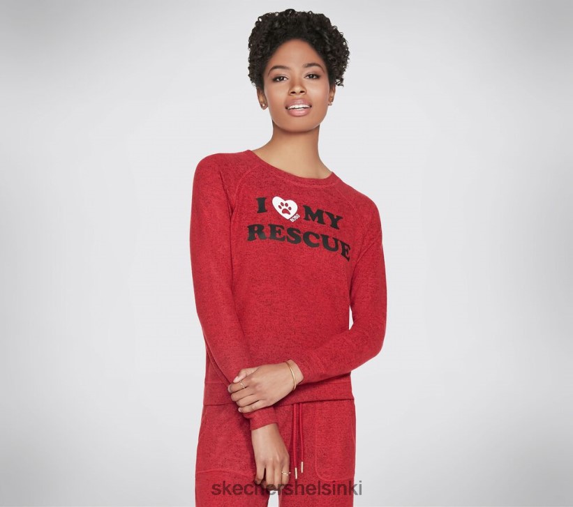 Skechers Helsinki Outlet – Skechers bobs vaatteiden pelastaminen kodikas pullover -paita punainen/hiili 8XTT801590 naiset