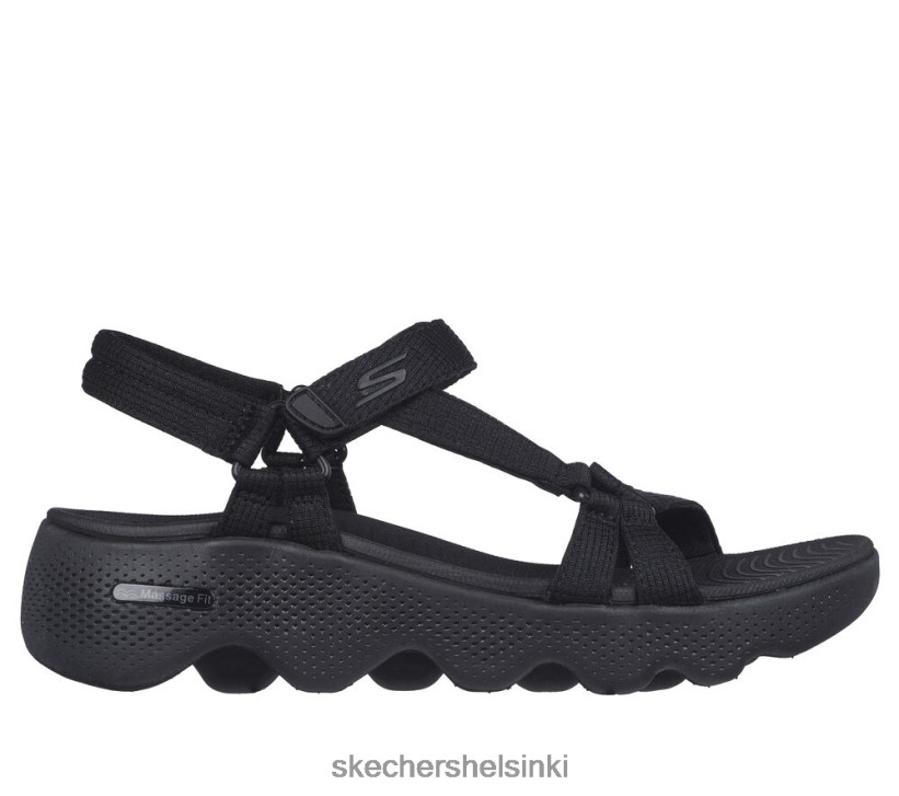 Astu mukavuuden aaltoihin, joissa on Skechers Go Walk -hieronta istuva – Transcend. Tässä innovatiivisessa joen sandaalisuunnittelussa on kudottu hihnan yläosa, jossa on säädettävät koukku- ja silmukan sulkemiset, erittäin kevyt, reagoiva hyperpurskepysätetty välipohja ja muotoiltu goga-maton jalka.