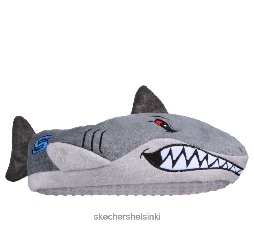 Fintastic -tyyli ja viihtyisä mukavuus yhdistyvät Skechers Shark -Botsissa – viihtyisät evät. Tässä kevyessä sisätiloissa on pehmeä muhkea kangas, jossa on temaattinen hain malli ja lämmin vuori.