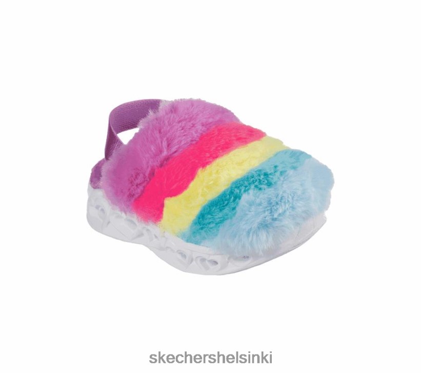 Laski värikkäässä mukavassa tyylissä Skechersin valot: Sydänvalot sandaali – väri palooza. Tässä liukastumisessa on monivärinen keinotekoinen yläosa ja vuori joustavalla takahihnalla ja sydämen veistetty valaistu välipohja.
