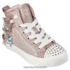 Kimallus ja kiilto tyylikkäästi Skechers Twinkle -varpaita: Tw -Lites 2.0 – Tähtien kiilto. Tässä korkealla pitsillä on synteettinen kimalteleva viimeistely, jossa on valaistu tähtitiedot, Rhinestud-koristeltu varpa ja tyynytetty mukavuusjalkainen.