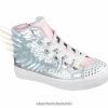 Kirkasta askeleesi maagisessa tyylissä Skechersin kanssa Twinkle -varpaita: Twinkle Sparks – Wing Charm. Tässä valaistusmallissa on kimalteleva synteettinen yläosa, jossa on pitsi etuosa ja strassikivi koristeltu varpa.