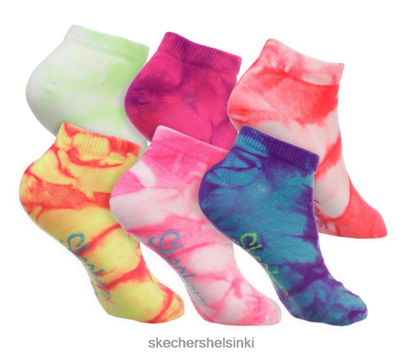 Loputon valikoima värikkäitä valintoja ja mukavuutta tulee Skechers-tarvikkeiden 6 pakkaus solmioväri-urheilulajista. Pehmeä poly-sekoituskangas matalalla nilkan korkeudella urheilullinen urheilullinen mukavuussukka mukavuusosan ja värikkäin solmioväriä.