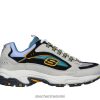 Lyö polkuja urheilullisessa mukavuudessa Skechers Stamina – Cutback. Tässä pitsi-retkeilypolun suunnittelussa on nahka, synteettinen ja verkko-yläosa, jossa on Skechers-muistivaahtopohja.