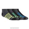 Tyyli ja mukavuus räjähtää Skechers -tarvikkeilla – 6 pakkaus poikien avaruusväriaineen matalalla leikkauksella. Pehmeä poly -sekoituskangas kudotussa avaruusväriainehoste -sukassa, jossa on kontrastivärinen kantapää ja varpa, matalan leikatun urheilun rento sukkimallissa. Kontrasti logon aksentit.