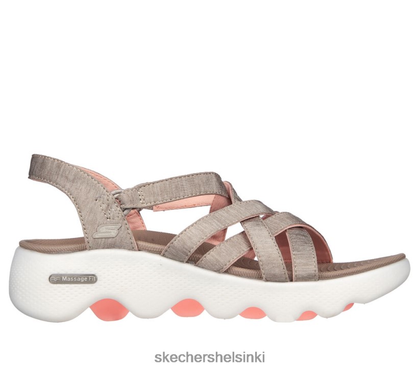 Hihna mukavuusaaltoihin, joissa on Skechers Go Walk -hieronta istuva – makea ylellisyys. Tässä innovatiivisessa sandaalisuunnittelussa on strappy-kangas, jossa on korkokengät, erittäin kevyt, reagoiva hyper purskeinen, joka on pehmennetty välipohja ja muotoiltu goga-maton jalka.