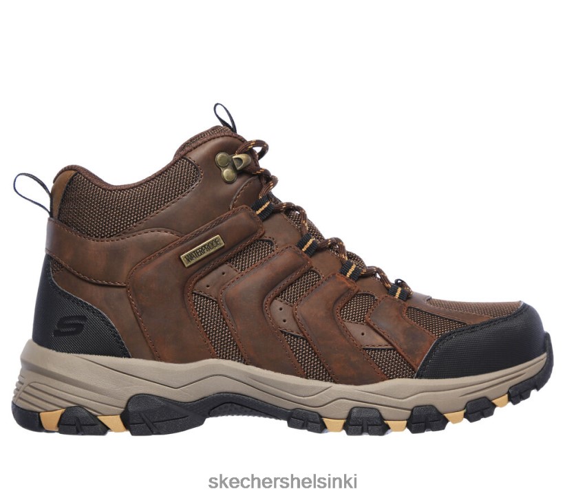 Valitse oma seikkailu Rugged -kykenevästä ulkona tyylistä ja mukavuudesta Skechers Readered Fit: Selmen – Relodge. Tässä pitsi-retkeilytyylisen nilkkurakenteen kanssa on vedenpitävä kestävä nahka, synteettinen ja mesh-yläosa, jossa on pehmustettu ilmajäähdytteinen muistivaahtopohja.