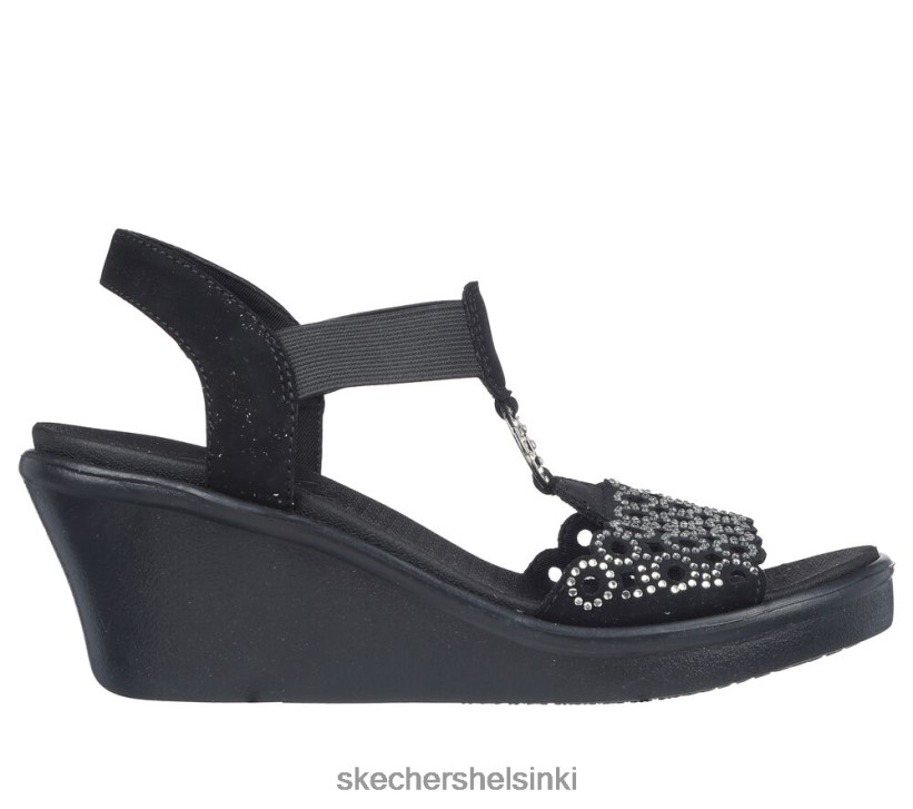 Timanttityylin mukavuus ja ulkonäkö yhdistyvät Skechers Cali Rumble On – Queen B2. Tässä kiilan sandaalissa on strassikailun koristeltu laserleikkaus tekstiilit ja synteettinen yläosa ja O-rengas, slingback-hihna ja tyynytetty luxe-vaahtojalka.