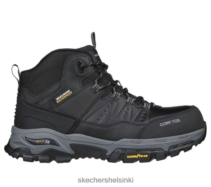 Luotettava turvallisuus ja koko päivän mukavuus Skechers-työssä: Arch Fit Tarver CT. Tässä vedenpitävässä tavaratilassa on pitsi-up nahka, synteettinen ja mesh-yläosa, jossa on komposiittivarvas, irrotettava kaarin istuva pohjallinen ja Goodyear-kumipohja.