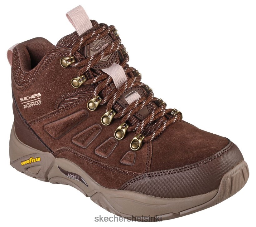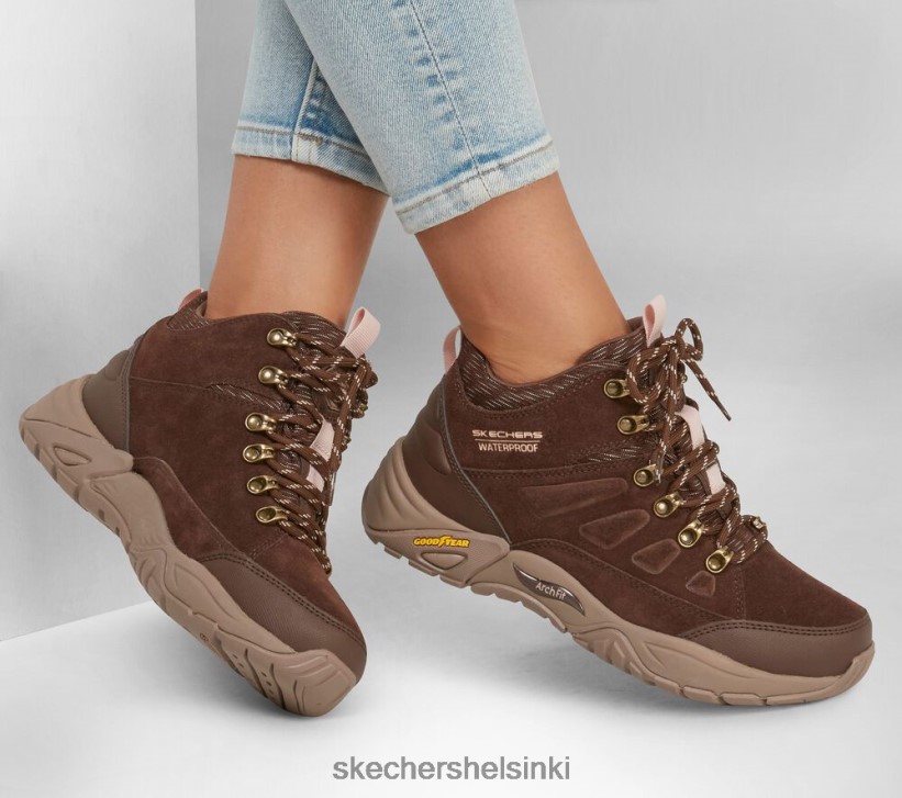 Palauta polut koko päivän mukavuudessa Skechers Relaced Fit: Arch Fit Recon. Tässä keskipitkän polun suunnittelussa on vedenpitävä mokkanahka ja mesh-yläosa, jossa on pitsi-etuosa, irrotettava kaarin istuva pohjallinen ja kestävä Goodyear-suorituspohja.