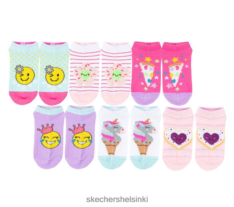 Yhdistä värikkäiden tyylien ja mukavuuden kanssa Skechers Kids ‘Smiley Floral Sukat – 6 pakkaus. Tässä matalassa leikkauksessa on kuusi hymiötä hymiö -teemalla.
