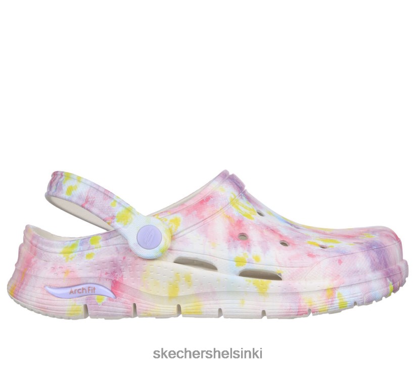Tunne auringonpaiste ja mukavuus helpon pukeutuvan tyylin kanssa Skechers -vaahdoissa: Arch Fit – aurinkoiset unet. Tässä liukastumisessa on joustava rei’itetty EVA-vaahto-yläosa, jossa on vaihtovelkakirjalainan hihna ja pehmustettu kaaren istuva jalkapala.